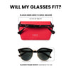 If you have very large sunglasses kindly measure the height of your frames, if bigger than 5.5 cm they will likely not fit our case properly.
